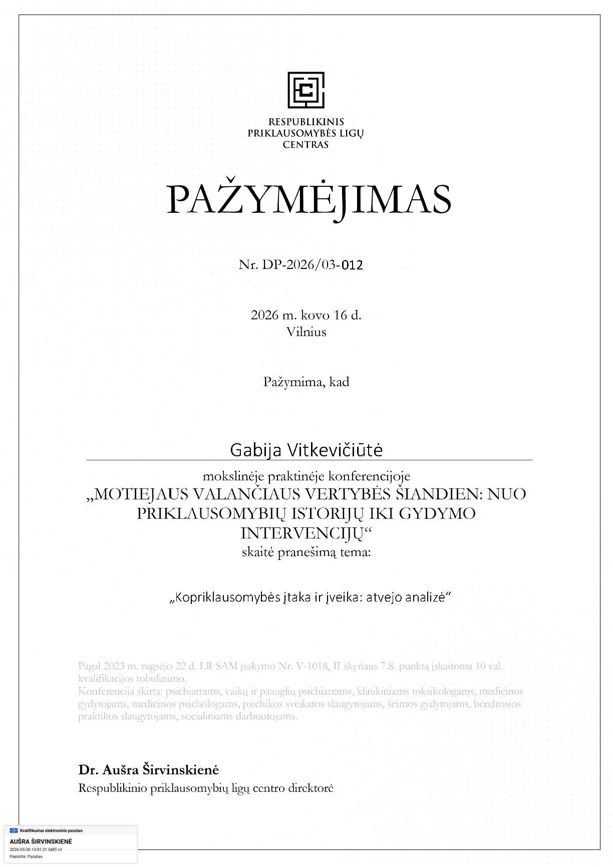 Jau daugiau kaip 10 metų dirbu priklausomybių lauke, 2020 m. baigiau priklausomybių konsultantų kursus, 2023 m. – specialią programą artimiesiems gydyti CRAFT, o nuo 2025 m. esu ir sertifikuota Integratyvios ir kūno psichoterapijos terapeutė.